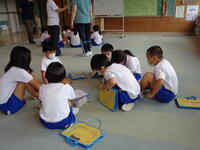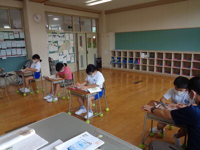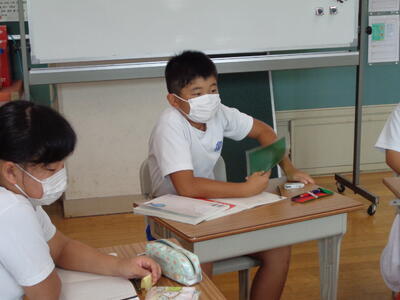 5・6年生の学級会。「下敷き」をテーマに話し合っていました。