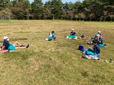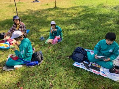 秋の森林を散策し、自然にたくさん触れ合うことができました。全員無事に、間もなく現地を出発するようです。