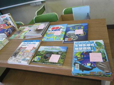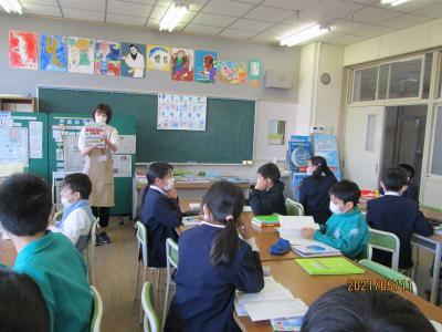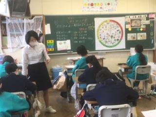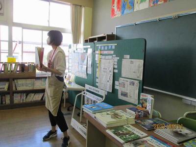 昨年度より学校司書の亀田智先生が週2回程度、本校図書室にいらっしゃっています。国語の授業でも、本の紹介などの単元や調べ学習の本選びについてなどの活動で、各クラスに入って指導にあたっています。6年生では、国語の授業で使用したい本についてブックトークを行いました。4年生では、「図書館に行こう」の学習で本の分類について説明しました。