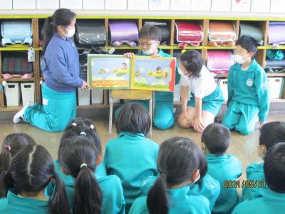 朝の読書の時間に、図書委員の子どもたちが低学年教室に出向き、本の読み聞かせをしました。低学年のみなさんも一生懸命にお話に聞き入っていました。