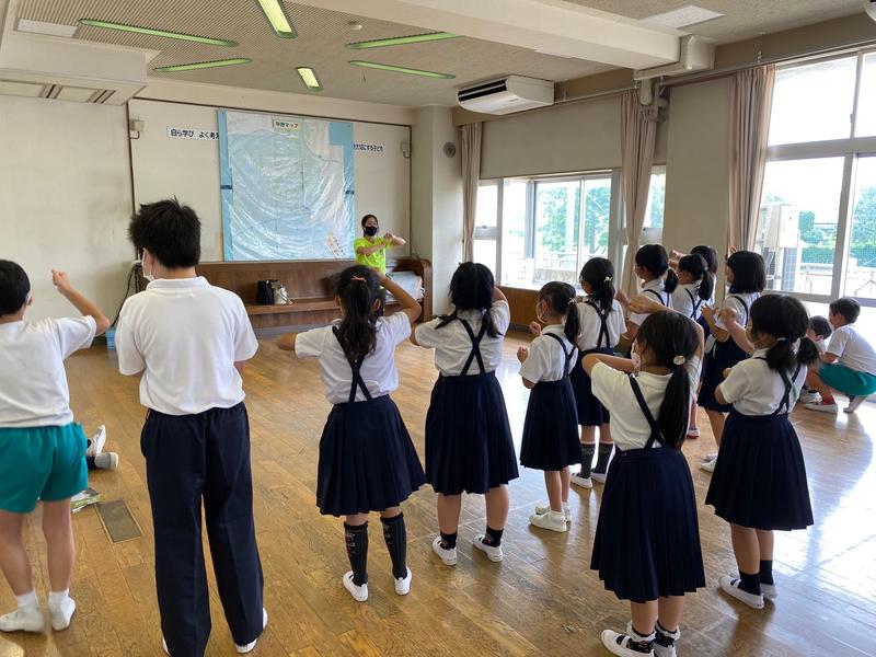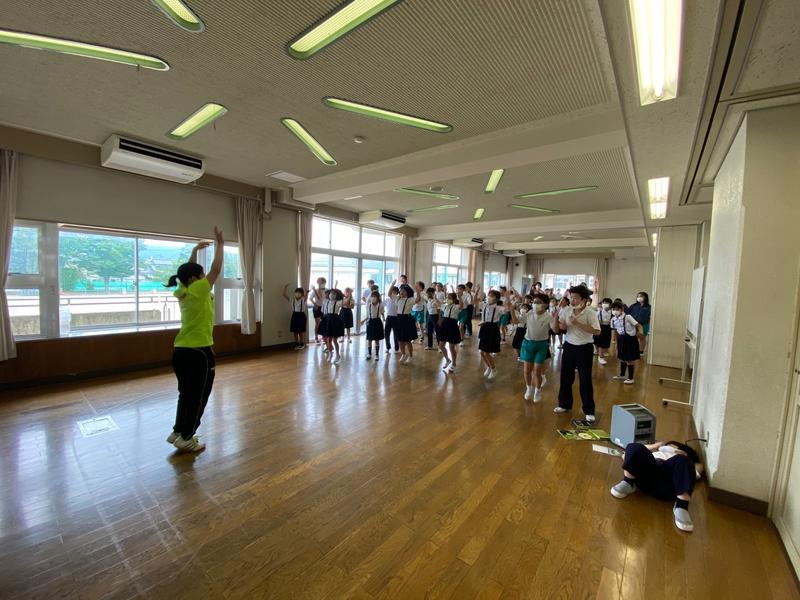 昼休みに体育の美咲先生と有志の参加者でダンスを行いました。梅雨も本番を迎え雨の日が続き、なかなか体を動かすことができなかった子ども達でしたが、昨年の運動会で踊った「パプリカ」と「ドラえもん」を楽しく元気いっぱい踊りました。汗を流しながら笑顔で踊っている子ども達の姿はとてもきらきら輝いていました。