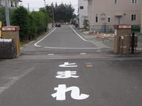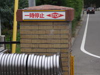 この度、正門のところの「一時停止」の表示を一新いたしました。