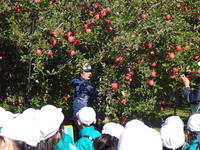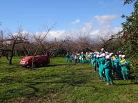 毎年3年生では、地域産業である果樹栽培の様子を学習しています。今年度の3年生も、学校近くにある元PTA会長さんの清野さんのりんご畑にお邪魔し、りんごの収穫に関することについて教えていただきました。これから収穫されるりんごを前にたくさん教えてもらっていました。メモをいっしょうけんめいとる姿もあり真剣な表情でした。来週には、収穫されたりんごで作る「りんごジャム」をJAの方々に教えていただきながら作る予定です。