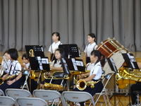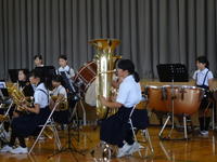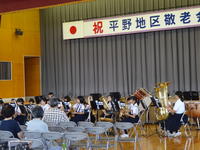 本校の特設音楽部がアトラクションに出演し、お年寄りのお祝いに花を添えてくれました。吹奏楽の演奏を皆さん大変喜んでくださいました。最後には、「ふるさと」を演奏し、会場の皆さんと一緒に歌いました。特設音楽部の皆さん、保護者会の皆さんありがとうございました。