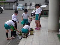 栽培委員会では、昇降口のプランターの花の植え替えをしました。