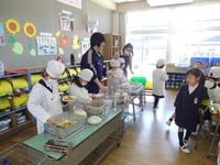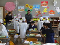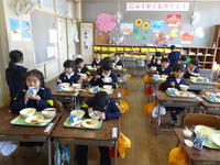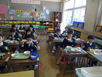 17日からは、1年生も給食が開始されました。準備の方法や食べ方、そして片づけ方を習いながら、1日1日上手になっています。楽しそうに給食を食べている子どもたちです。