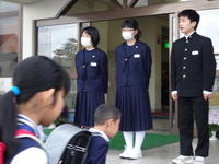 中学生が小学校の昇降口前で、大きな声で「おはようございます」と声をかけてくれました。