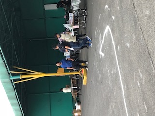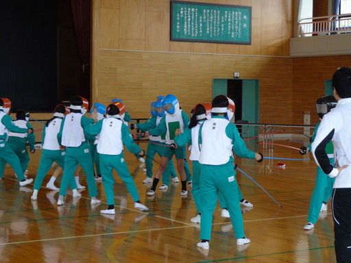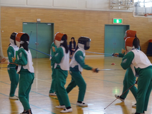 続いて、フェンシング競技体験です。体験用の防具をつけて教えていただいたように行ってみました。さすがに男子は、様になっている子が多かったようで、楽しんで体験できたようです。