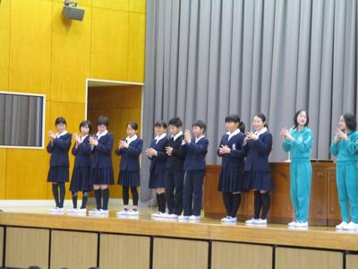 11月22日(木)の全校集会で、「かぜ・インフルエンザを予防するために手洗いうがいをしよう」という内容で、保健委員会の児童が発表を行いました。石鹸を使った手洗いをすることの大切さ、その方法について石鹸のCM曲「あわあわてあらいのうた」で実演しながら呼びかけました。帰宅後、食事の前等にしっかりと手を洗い、予防に努めてほしいと思います。