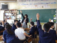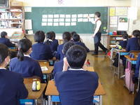 18日の1、2校時に、平野中英語科の斎藤先生と佐藤先生がおいでになって、6年生の各学級で英語の授業を行ってくださいました。