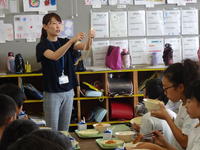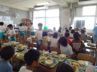2019年8月25日 16時28分23日(金)福島市と友好都市協定を結んでいる東京都荒川区の尾久小学校5年生40人が、「ふくしまの自然体験交流」で平野小学校に立ち寄り、平野小学校の5年生と一緒に福島の給食を味わい交流を深めました。