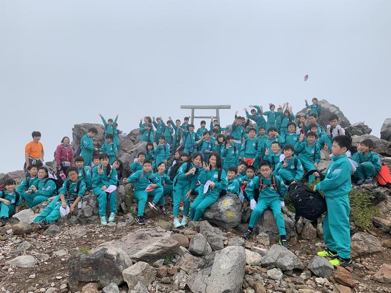5年生の宿泊学習1日目は茶臼登山でした。全員無事に山頂まで行き、下山しました。