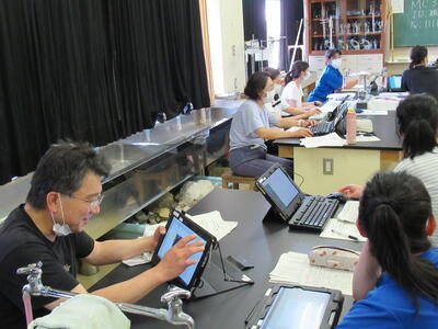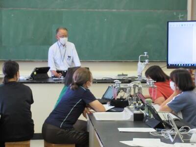 タブレット活用職員研修 2021年7月16日 16時03分 本日、教職員用タブレットの研修会を行いました。メタモジクラスルームを使って、どんなデータが作成できるか工夫しながら研修を進めました。市の教育研修課から講師をお招きして、実践的な研修をすることができました。
