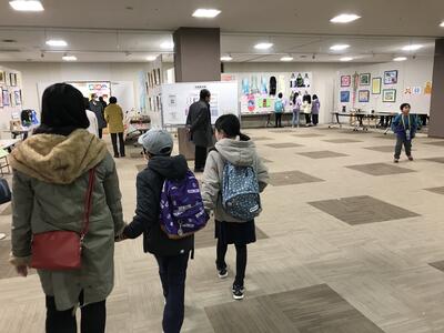 2023年12月1日 11時15分12月1日、ひとみ学級とかがやき学級の8名の子ども達は、ダイユーエイトMAX4階で開催されている「福祉作品展」を見学しました。