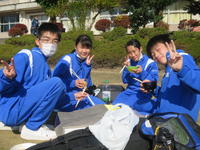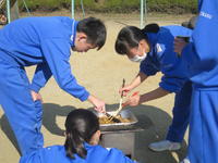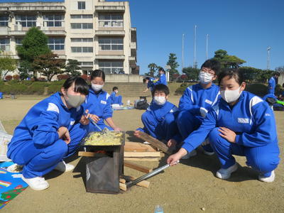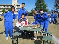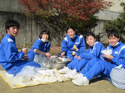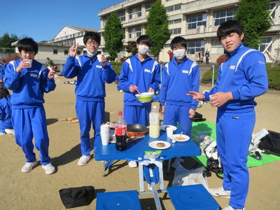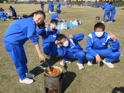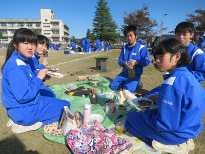 10月31日(土)に、快晴のもと、思い思いに食材を持ち寄って、班ごとに野外炊飯を行いました。