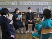 あらかじめ、児童の皆さんから質問が届けられていて、その質問に中学3年生が答える形で懇談は進められました。