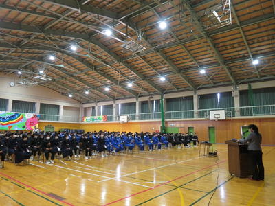 まず、本校の校長先生が、中学校を卒業しても自動で行き先が決まるわけではないと、小学校との違いにふれた話をしました。