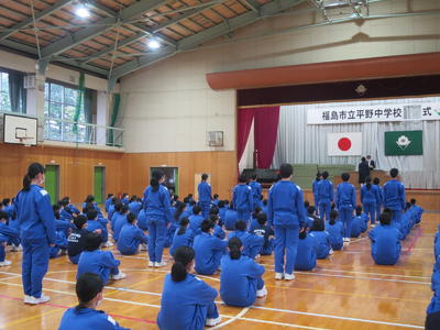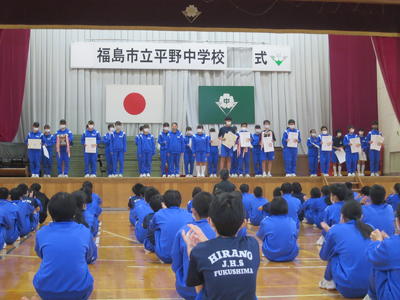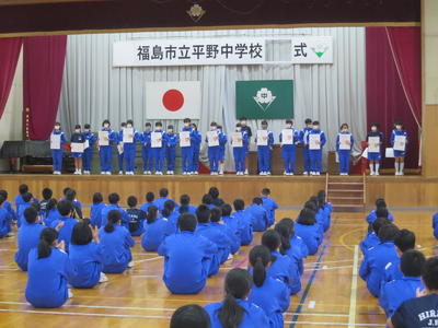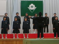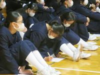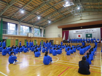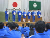 任命をはじめとする、きょうの全校集会の様子をお知らせします。