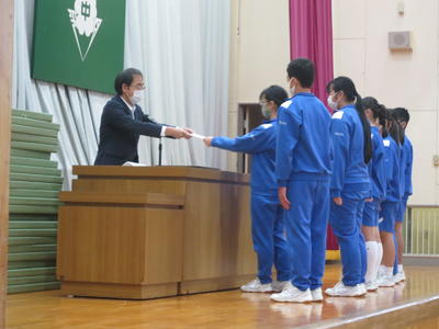 そうして決定された生徒会役員や生徒会各委員長・副委員長、学級委員長・副委員長に、きょうの全校集会で、校長先生から任命証が授与されました。