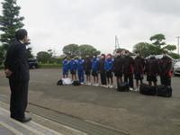 このあと、バレーボール部、バスケットボール部男子が大会へと出発します。