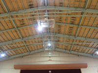 また、天井近くには、鉄骨が補強されて体育館の強度が増しています。(写真㋕)