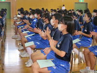 今年度は、中体連総合大会が中止となり、こうした壮行会を体験できなかった3年生も一生懸命に応援していました。