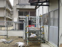 〈仮囲い〉 〈柔道場出入口変更〉 〈畳を移動し柔道場に用具の置き場所を確保〉