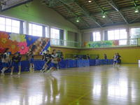 放課後、校庭ではソフトボール部が、体育館ではバレーボール部とバスケットボール部女子及び卓球部が、いつもと同じように活動しています。