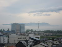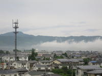 今朝の福島市は、周りを低く垂れ込めた雲に囲まれていました。