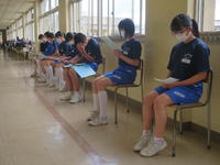 体育館での密集、密接を避けて、放送により生徒総会を実施しました。