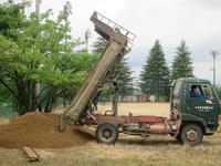 こうした状況を受けて、福島市教育委員会に要望したところ、本日、山砂の搬入となりました。