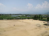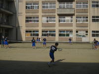 それでも、生徒たちは、昼休みに校庭に出て、雲一つない青空の下、ボールを使って体を動かしています。