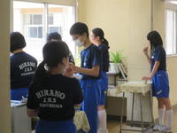 きょうは、教員が、部活動終了後に、使用した用具をどのように消毒したらよいかについて、シミュレーションをしました。