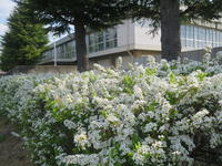 ◎ 登校する生徒と桜 ◎ 桜と雪うさぎ ◎ ユキヤナギと体育館