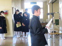 式の終わりには、1年生の代表が「大きな期待感をもてました」と、先輩の働きかけに応えていました。