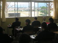 ある学級では、全員校庭側を向き、校庭の桜を愛でながら給食の時間を楽しんでいました。