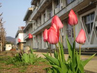 ◇ まずはこの場所に… ◇ 校庭の向こう側は… ◇ 教室前の花壇には…