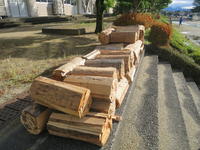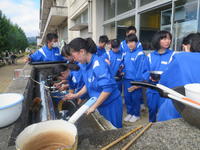 昨晩の大雨がうそのように青空が広がり、校庭にかまどの煙が立ち上りました。