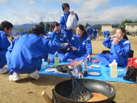一日延期して実施した野外炊飯、生徒たちに自然と笑顔があふれます。
