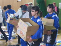 30名あまりの生徒がボランティアとして参加し、来場された方に品物を詰める箱を手渡したり、購入品がたくさん入った箱を持ち運んであげたりして、大活躍でした。
