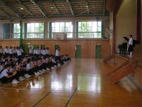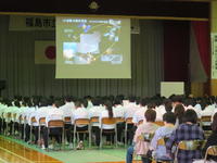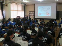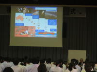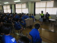 その後は、体育館で、親子でいっしょに参加する講演会を開きました。