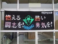 また、文化部が作成し、昇降口に掲示された応援幕が選手の出発を見送ります。