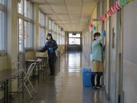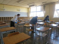 消毒液は福島市から配付され、机やいすはもとより、ドアや窓の取っ手、水飲み場の蛇口、トイレのレバーなどを消毒の対象としました。