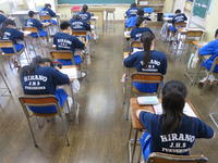 1年生は、机に向かう後ろ姿に、真剣みが伝わってきます。(写真A:1年3組)