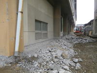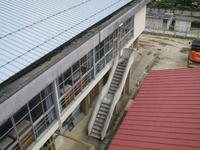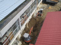 また、校舎から体育館へと通じる犬走も削られていて、工事は順調に進んでいます。