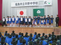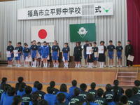 その後、福島地区英語弁論大会や福島支部中体連新人体育大会で入賞した生徒が、賞状等を披露しました。