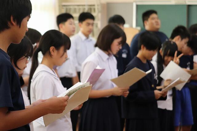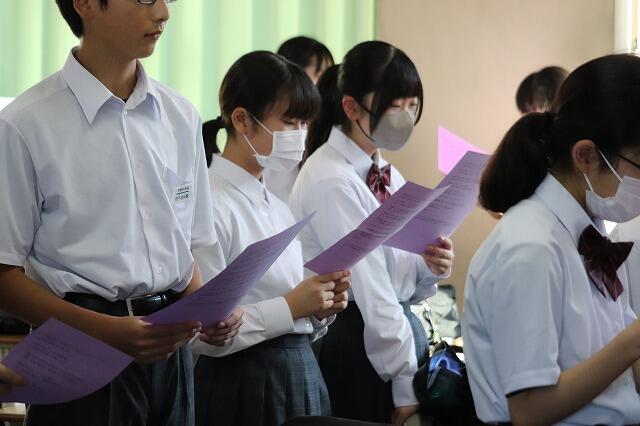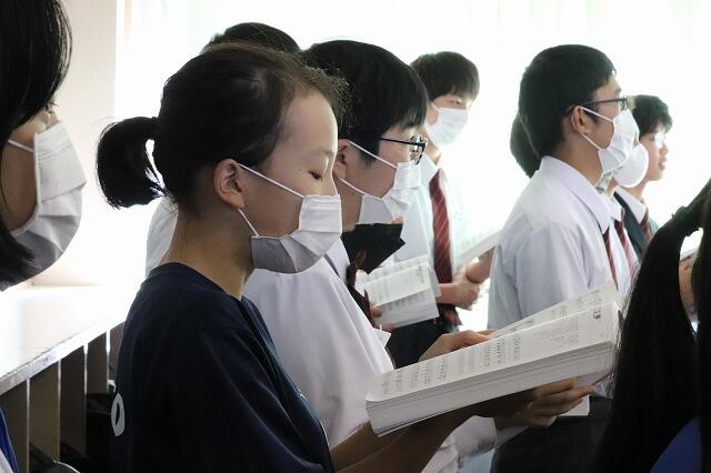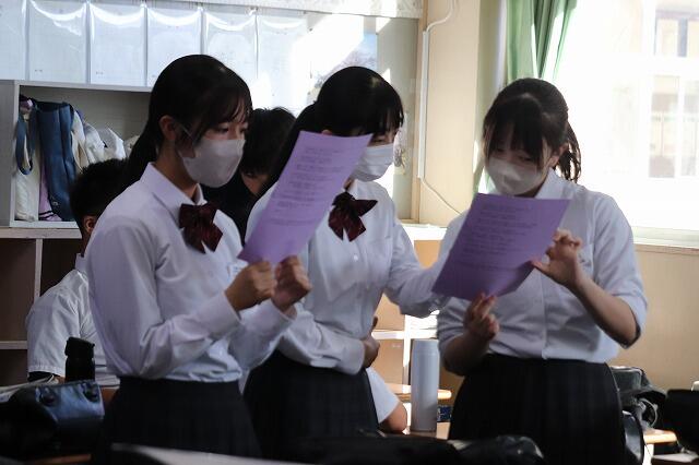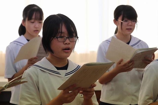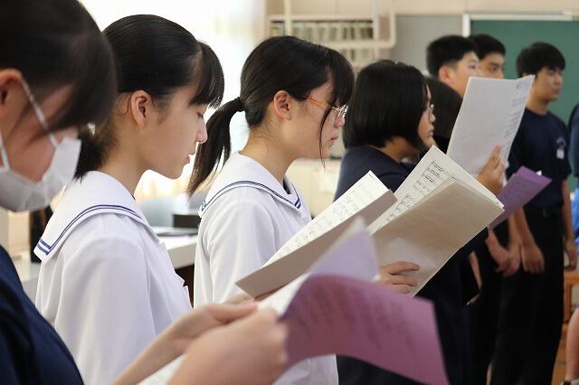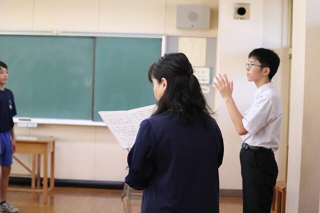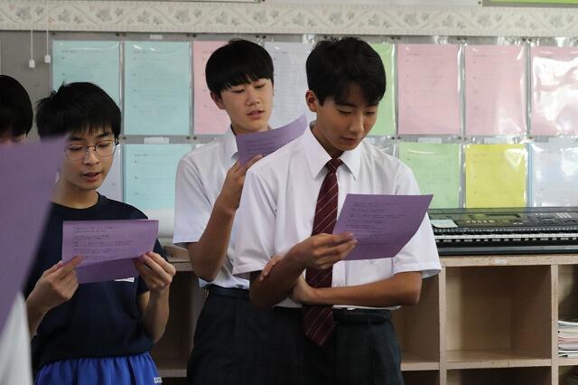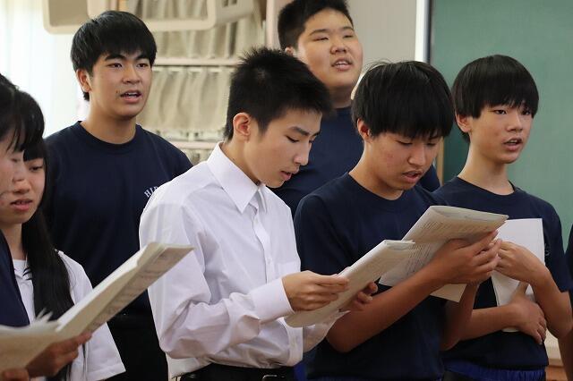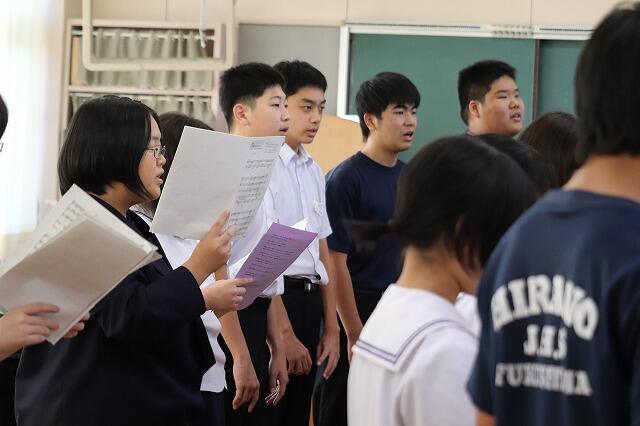 梨秋祭当日、全校生で歌えるよう、練習しています。