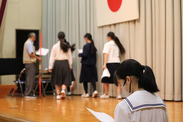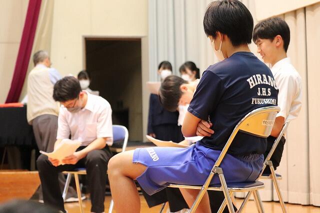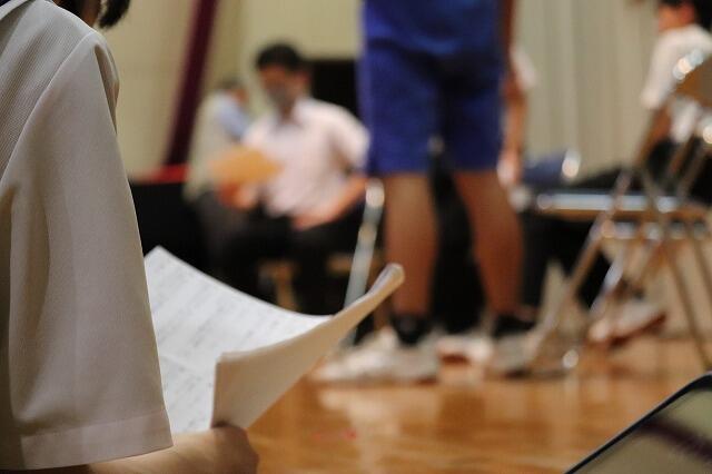 2024年10月2日 18時50分放課後の体育館にて、生徒会役員と梨秋祭実行委員による「オープニングセレモニー」の打ち合わせが行われました。