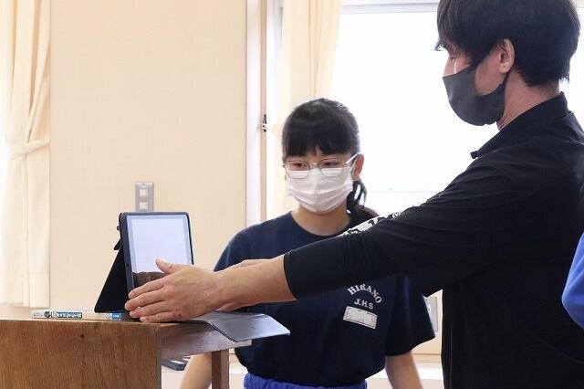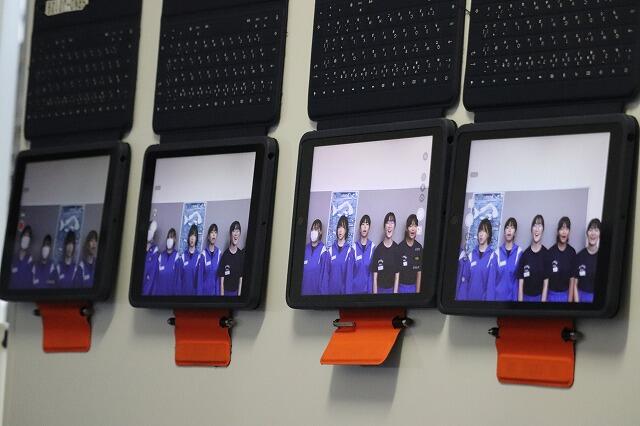 iPadで自分たちの姿勢、表情をチェックしています。こういう使い方もできるんですね。確かに「客観視」って大事です。