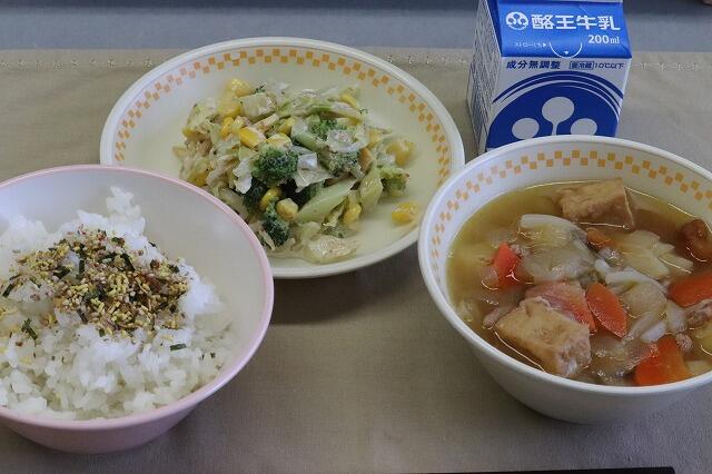じゃがいものうま煮。〔給食〕 2025年2月4日 14時30分 今日の出来事 本日の給食献立は「卵ふりかけ・おかかマヨサラダ・じゃがいものうま煮・ごはん・牛乳」でした。ほくほくとろとろのじゃがいもが美味でした。お誕生日おめでとうございます!